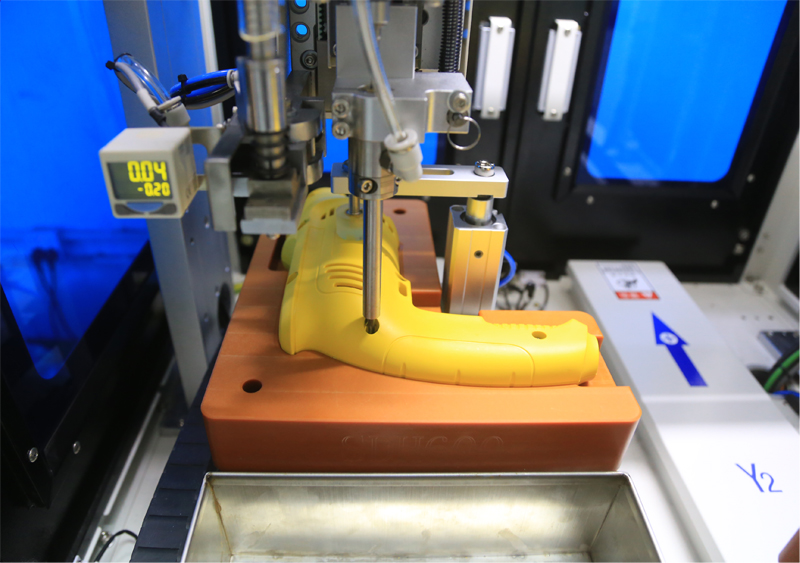 而手電鉆自動鎖螺絲機則是根據(jù)用戶的使用要求,定制好相應(yīng)的設(shè)備方案后,由客戶進(jìn)行最終確認(rèn)后開始采購物料組裝。自動鎖螺絲機應(yīng)用于產(chǎn)品上的螺絲擰緊,它可以準(zhǔn)確地定位螺孔位置,然后由氣管吹送至鎖附機構(gòu)后,進(jìn)行螺絲擰緊動作。不僅速度快,且鎖附效率穩(wěn)定。