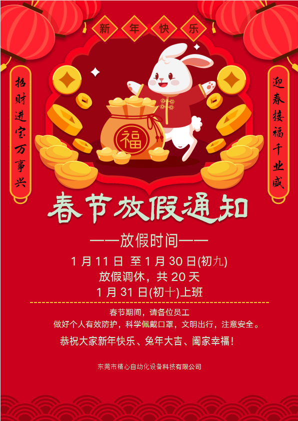 精心科技2023年春節(jié)放假通知